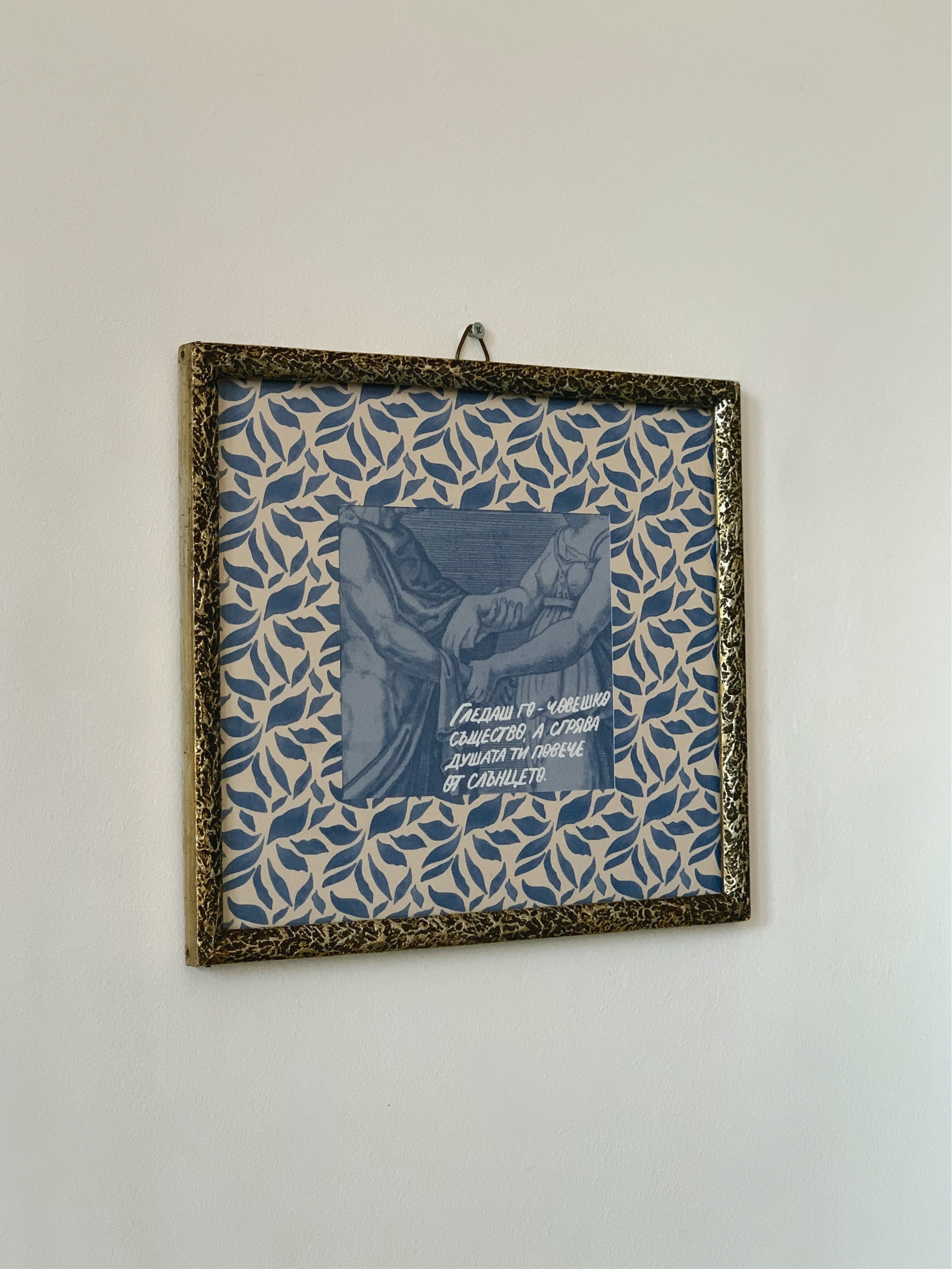 Рамката е подбрана от локален малък антикварен магазин, като е останала с оригиналното си стъкло, което предпазва принта.